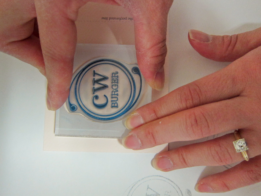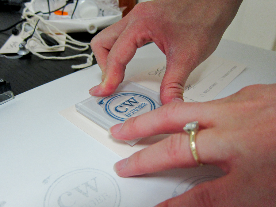 Embossed Monogram: Gray embossing stamp, clear powder and heating tool